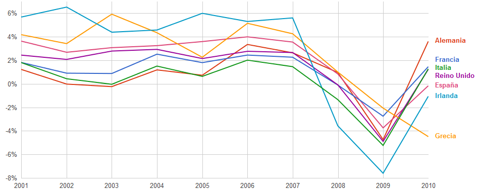 El mensaje de austeridad de Rajoy generó grandes expectativas sobre las medidas que pensaba tomar para enfrentar la crisis. España parecía ser el único país europeo que pensaba enfrentar la crisis reduciendo el déficit pero sin aumentar los impuestos; es decir, reduciendo el gasto público y achicando al estado. Si el crecimiento económico se da a través de inversiones, y las inversiones dependen de la rentabilidad, no subir los impuestos no parece ser una idea muy descabellada. No obstante, a poco de asumir, Rajoy parece estar tomando medidas opuestas a las prometidas; aunque quizás aún sea muy temprano y quede por ver qué otras medidas tiene pensado tomar. Esta situación me dio curiosidad por volver a ver algunos datos generales (no muy detallados) de algunos países de Europa.