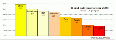 En varios posts hemos hecho referencia al oro. Me pregunté entonces qué cantidades de oro se produce hoy, quiénes son los máximos productores y cómo se encuentran distriubidas las toneladas de oro en forma de reservas, y pude encontrar estos gráficos.