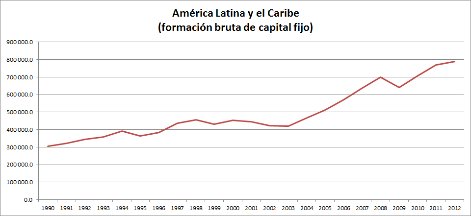 Los datos de inversión están completos para Latino América pero no están desagregados. En esta serie sí se observa un cambio de tendencia luego que la Fed comienza con su política expansiva, pero al no haber información desagregada no es fácil discernir en qué industrias se ha invertido más y en cuales menos. Si la inversión de capital fijo es más elástica a la política monetaria que otras industrias, entonces se puede sospechar de mal-asignación de recursos como fruto de la política monetaria.