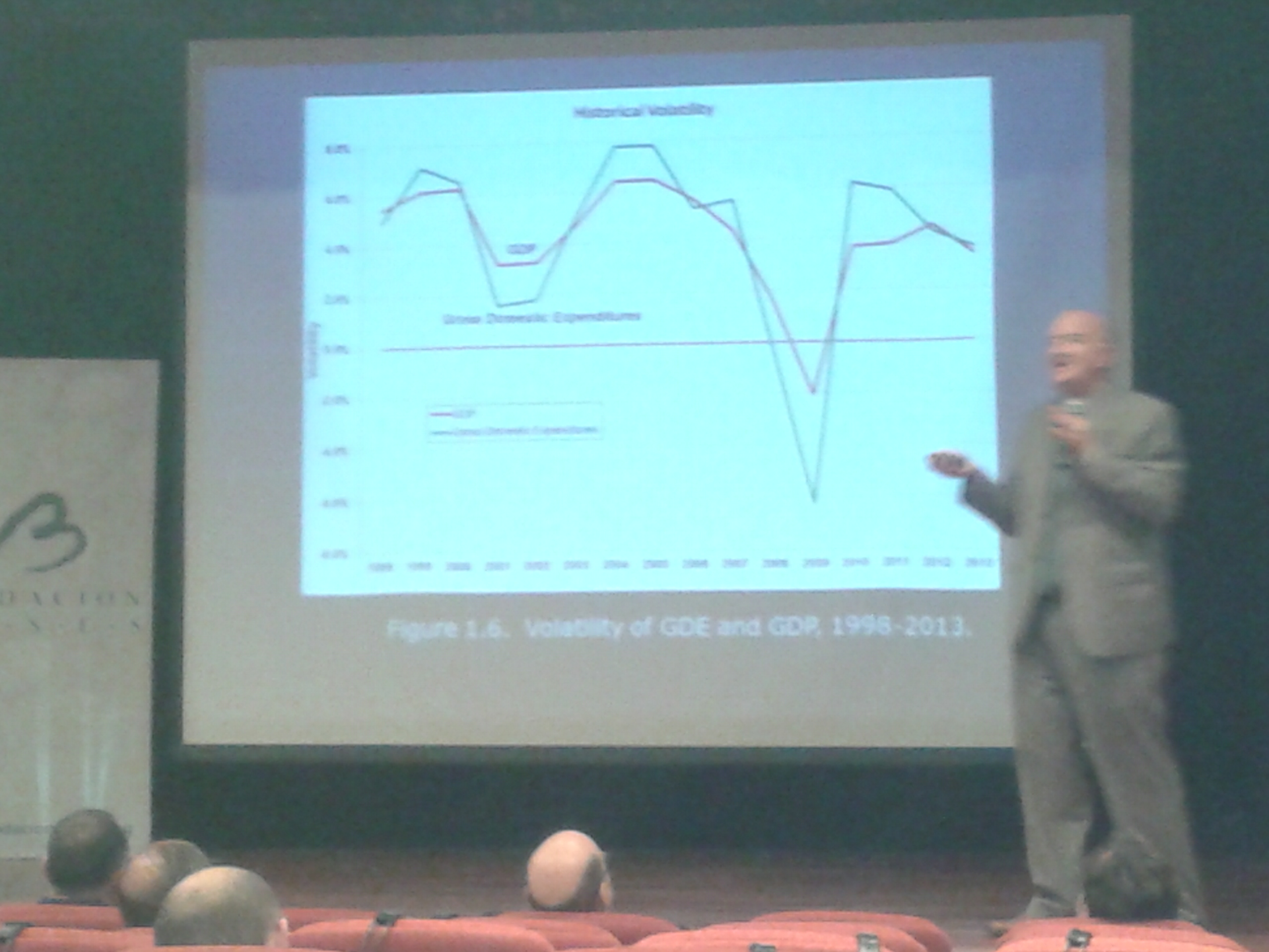 La presentación de Paliacura, además, enfatizó que el GDE en Chubut muestra una volatilidad tres veces mayor que el GDP, lo que ratifica el punto señalado por Skousen para la economía norteamericana.