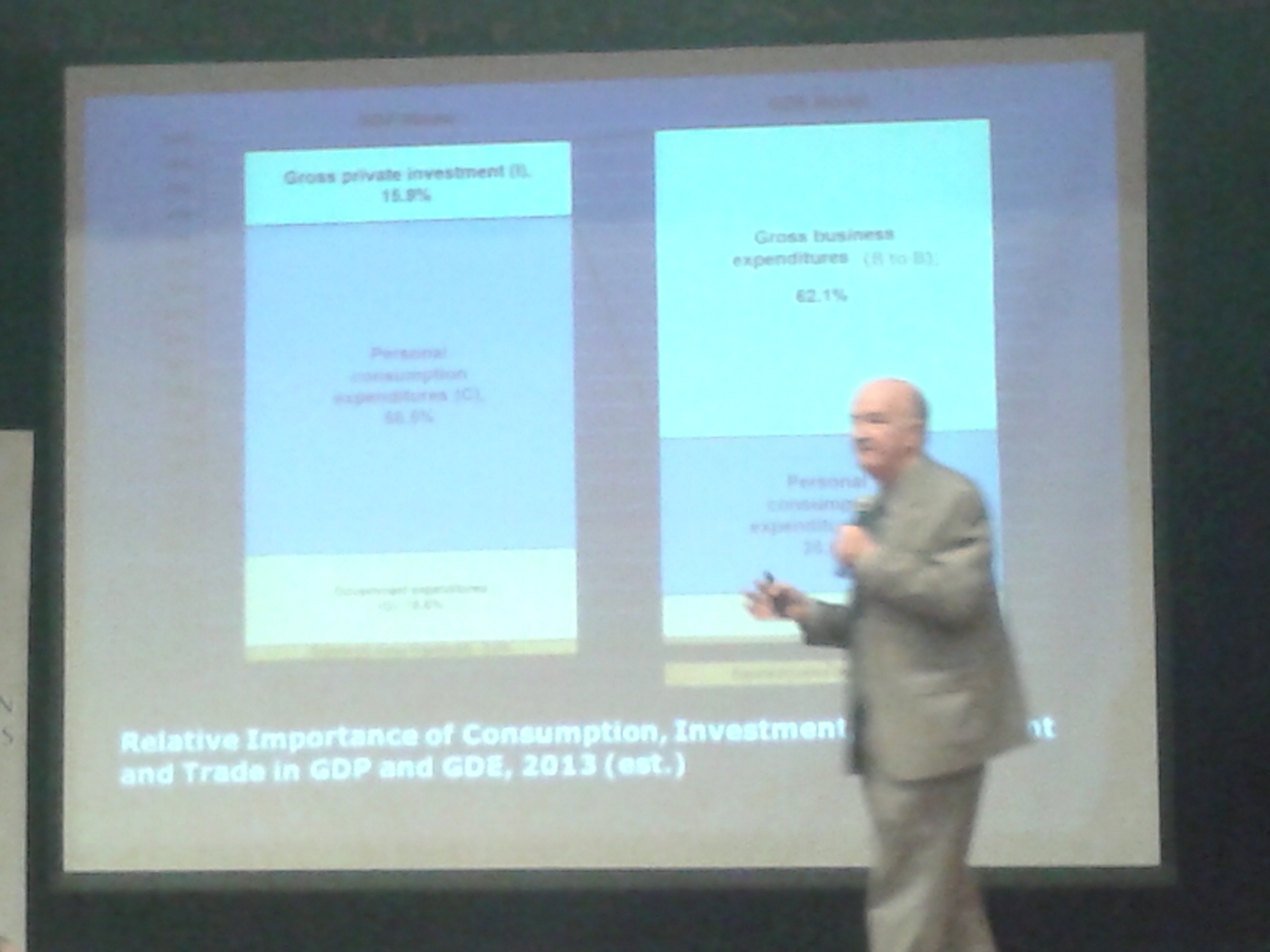 Por otro lado, si estudiamos comparativamente la composición de las dos medidas, llegamos a la conclusión que la inversión es la variable central de la economía, y no el consumo. Mientras en el GDP, el gasto en inversión representa sólo el 20 % o menos, en el GDP representa más del 60 %.