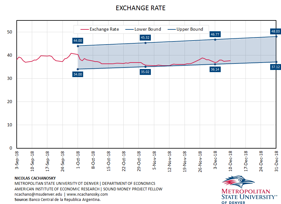 En la nueva política cambiaria el tipo de cambio se mueve libremente dentro de una generosa banda de flotación (la zona de no intervención). Los límites inferiores y superiores se actualizan a un 3% diario hasta diciembre. El Comité de Política Monetaria decidió extender la zona de no intervención por otros tres meses actualizando sus límites a un 2% mensual.