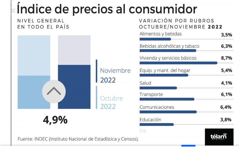 Indice de Precios al consumidor. Nivel general en todo el país. Noviembre de 2022.