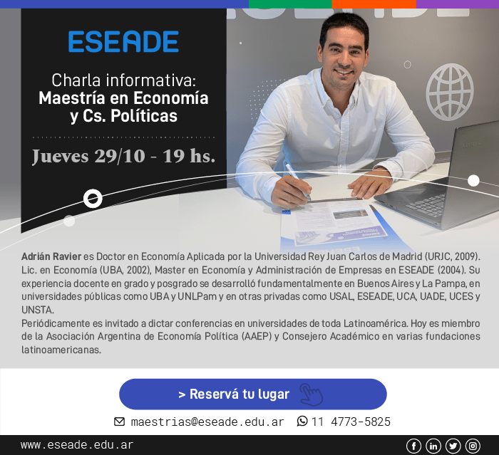 Charla informativa de la Maestría en Economía y Ciencias Políticas – Hoy jueves 29/10 – 19 hs