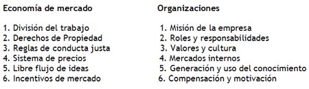 3) que el proceso de mercado en el que se enmarca la empresa, está basado en especialización, división del trabajo, una “mano invisible