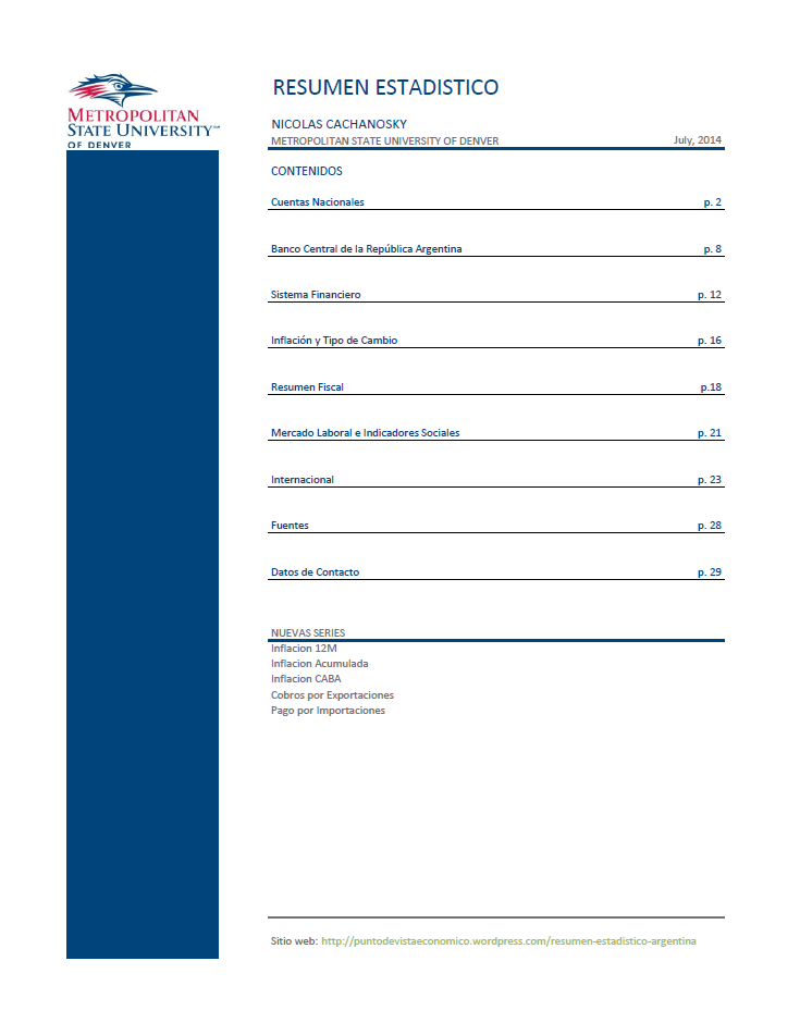 Ya se encuentra disponible el resumen estadístico para el cuarto trimestre 2014 de Argentina.